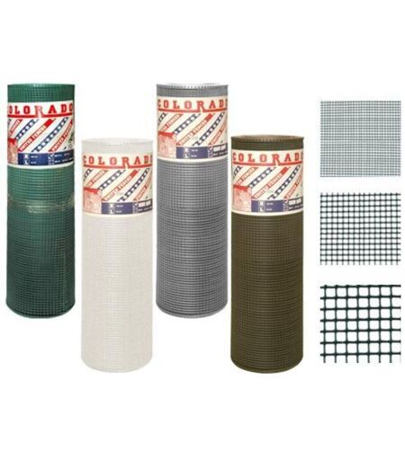 Reti PVC Colorado Reti in plastica estrusa realizzata in HDPE ( polietilene ad alta densità) stabilizzati agli UV, inattacabile da agenti chimici e muffe, pratiche per milleusi, ideale per recinzioni leggere e decorative, l'assortimento si completa grazie ad una varietà di trame disponibili. Peso 250 gr/mq.. Rotoli altezza cm. 100 - Lunghezza 50 mt. Verde - maglia 5x5 mm. ...