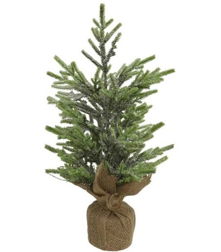 BAKAJI Albero di natale 42cm Alberello Pino con Base Sacco Iuta Decorazione Natalizia