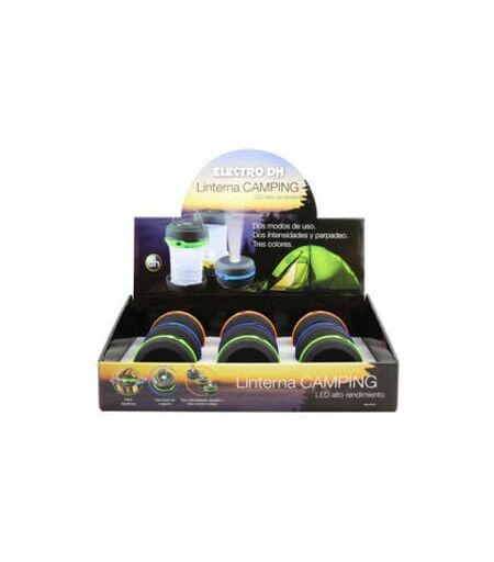 Lanterna da campeggio a LED. 2 modalità Caratteristiche tecniche: Lanterna da campeggio a LED 2 modalità Può funzionare in modalità lanterna o torcia. Entrambe le modalità hanno due intensità luminose e modalità di lampeggiamento Inclusi base magnetica, appendino e gancio Luce luminosa e a lunga portata LED ad alto rendimento ed efficienza energetica Alimentazione con 3 batterie AA, non incluse Presentato in un espositore di 9 unità ...