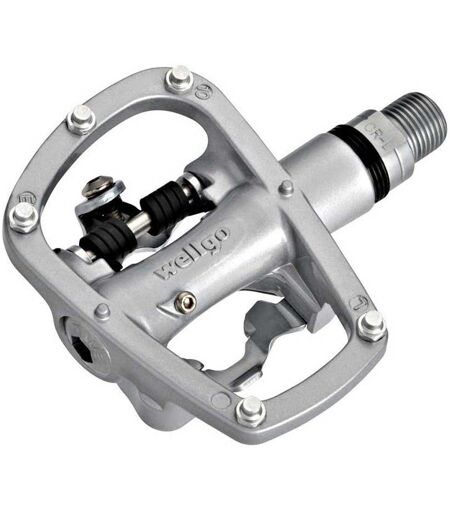 Pedali per bici MTB / TREKK / CITY.Wellgo R120B.Sistema combinato: clip in + piattaforma piatta.Discussione:9/16 ´´x 20T.Nucleo: alluminio.1 pezzo.D'argento.Asse: CR MO.Cuscinetto sigillato.Tacchette compatibili Shimano SH51 o REF.15554/35527.Misura piattaforma: 85 x 84 mm.Peso: 352 gr. ...