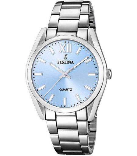 Orologio Analogico Di Festina Da Donna Della Collezione Boyfriend Collection. Orologio Analogico Con Cassa In Acciaio Inossidabile 316l Di Forma Rotonda Con Diametro Di 36.8 Mm E Spessore Di 9,2 Mm. Quadrante Di Colore Azzurro E Vetro Minerale. Cinturino ...