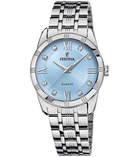 Orologio Festina, Della Collezione Mademoiselle, Con Vetro In Minerale, Sfera Di Colore Azzurro, Indice In Acciaio Laccato, Bracciale In Acciaio Con Chiusura So, Cassa Rotonda Di Dimensioni 32.0, Resistenza All'Acqua 5 Atm, Movimento M2036. La Referenza ...