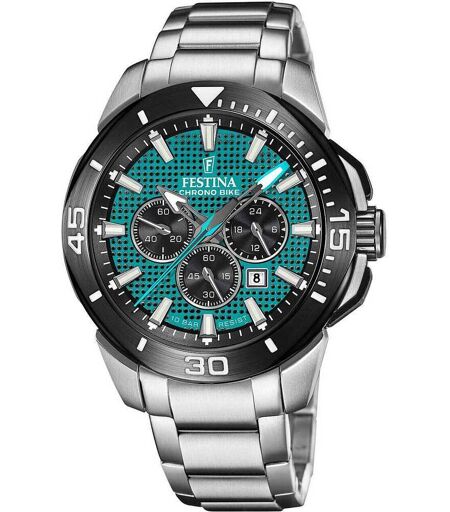 Orologio Cronografo Festina, Della Collezione Chrono Bike, Con Vetro In Minerale, Sfera Di Colore Verde, Indice In Acciaio Bianco, Bracciale In Acciaio Con Chiusura So, Cassa Rotonda Di Dimensioni 47.0, Resistenza All'Acqua 10 Atm, Movimento M0s20. La ...