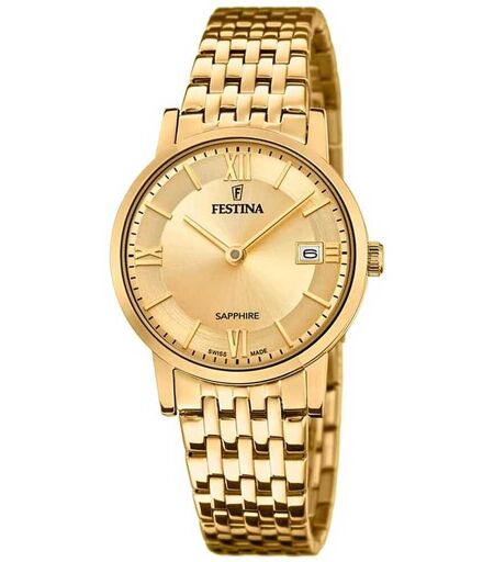 Orologio Festina Da Donna, Della Collezione Swiss Made, In Acciaio Inossidabile 316l, Di Colore Champagne, Vetro In Zaffiro, Colore Della Sfera Champagne E Indice Placcato, Con Bracciale In Acciaio Inossidabile 316l Con Chiusura So, Con Cassa Rotonda, Di ...