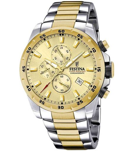 Orologio Cronografo Festina, Della Collezione Chrono Sport, Con Vetro In Minerale, Sfera Di Colore Champagne, Indice Placcato, Bracciale In Acciaio Con Chiusura So, Cassa Rotonda Di Dimensioni 45.05, Resistenza All'Acqua 10 Atm, Movimento Mjs15-3h111. La ...
