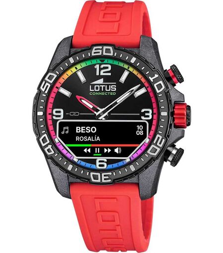 Orologio Da Unisex Di Lotus Della Collezione Connected D. Orologio Con Cassa In Fibra Di Carbonio Di Forma Rotonda Con Un Diametro Di 45.0. Il Citnturino È In Silicone Di Colore Rosso. Il Vetro È Zaffiro Con Dislay Oled E Pulsanti Laterali Per La ...