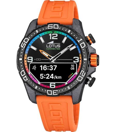 Orologio Da Unisex Di Lotus Della Collezione Connected D. Orologio Con Cassa In Fibra Di Carbonio Di Forma Rotonda Con Un Diametro Di 45.0. Il Citnturino È In Silicone Di Colore Arancione. Il Vetro È Zaffiro Con Dislay Oled E Pulsanti Laterali Per La ...