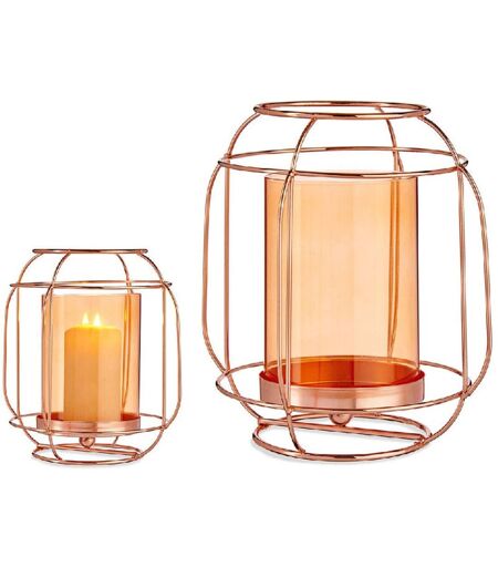 GIFTDECOR Portacandele Gift Decor Rame Ambra Metallo Vetro 19 x 20 x 19 cm Lanterna