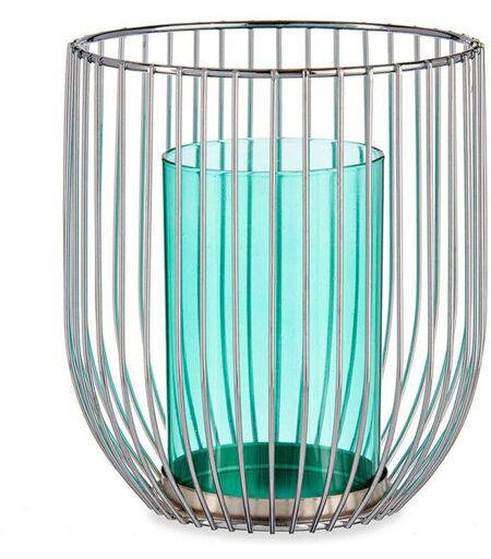 GIFTDECOR Portacandele Gift Decor Azzurro Argentato Argento Metallo Vetro 15 x 17 x 15 cm Gabbia