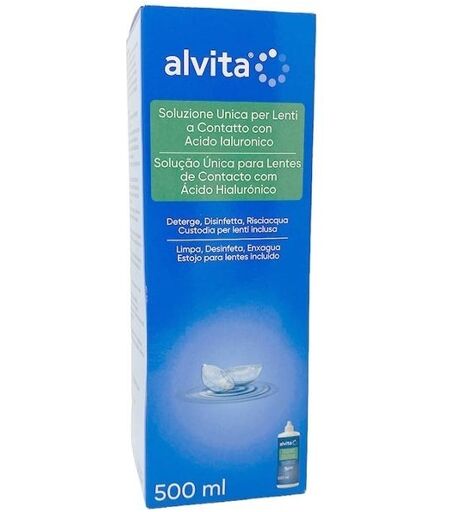 Alvita Soluzione Unica per Lenti a Contatto con Acido Ialuronico, 500ml
