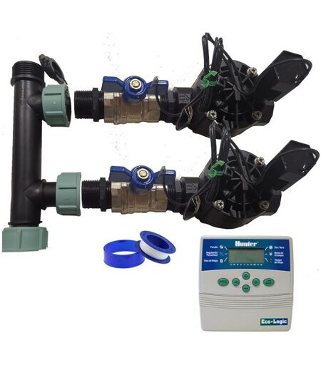 RAIN BIRD - Sistema di Irrigazione Automatica a 2 Zone con Programmatore ELC401 + Elettrovalvole hv 1'' 24v