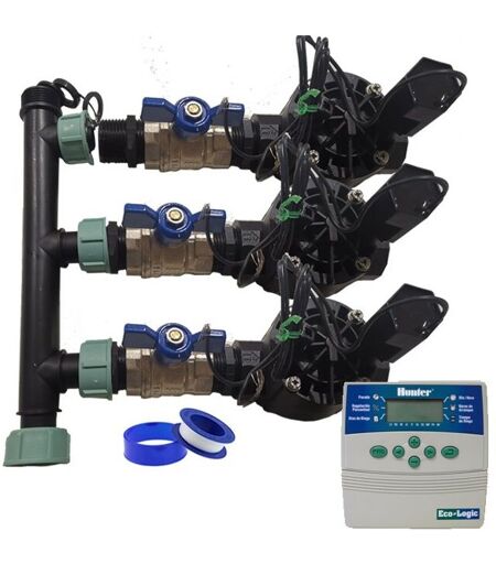 RAIN BIRD - Sistema di Irrigazione Automatica a 3 Zone con Programmatore ELC401 +Elettrovalvole hv 1'' 24v