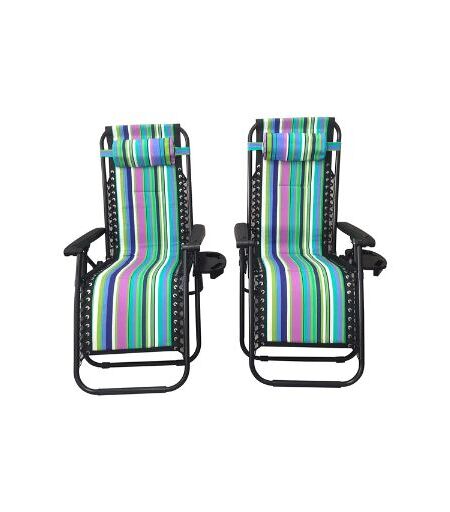 Romo - Set di 2 Sdraio pieghevole per giardino e spiaggia, a righe blu