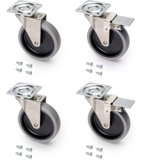 Le ruote per i mobili Slip 2 sono perfette per tutti i tipi di mobili per la casa e l'ufficio. Ogni kit è composto da 2 ruote con freno, 2 senza freno e le viti necessarie per il montaggio. Kit di 4 ruote: 2 con freno e 2 senza freno. Diametro della ruota: 100 mm. Struttura in acciaio e plastica colore grigio. Rivestimento della ruota in caucciù grigio. Piastra per avvitare al mobile in acciaio zincato e viti di montaggio incluse. Capacità di carico di 70 kg per ruota. 2 rotelle senza freno, 2 rotelle con freno, viti di fissaggio VEDI LE MISURE DEL PRODOTTO NELLE IMMAGINI. ...