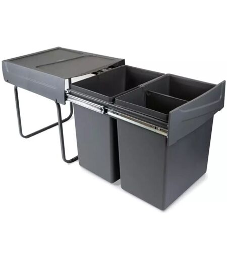 DESCRIZIONE GENERALE Pattumiera per raccolta differenziata rimovibile, ideale per riciclare e classificare i rifiuti domestici. Progettata per essere integrata nei mobili della cucina, offre un accesso semplice ai bidoni. Ha una capacità totale di 40 litri ed è valida per moduli con dimensioni minime di 364 mm di larghezza, 500 mm di profondità e 395 mm di altezza. SPECIFICHE TECNICHE Contenitore per rifiuti a fissaggio inferiore ed estrazione manuale con capacità totale fino a 40 litri. Per installazione in moduli con misure interne minime di: larghezza 364 mm, profondità 500 mm e altezza 395 mm. Include due contenitori rimovibili da 20 litri e un separatore per uno dei contenitori. Guide a sfera di estrazione totale, silenziose con fermo in gomma alla chiusura. Realizzato in acciaio e plastica, in finitura grigio antracite. INSTALLAZIONE Facile installazione mediante le viti incluse nel prodotto. ...