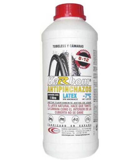 Il nostro liquido in lattice anti puntura per tubeless e fotocamere con formula di composizione tripla di lunga durata, permette di mantenere il liquido nella ruota prolungandone la durata tra i 3 e gli 8 mesi. (A condizione che sia conservato per esporre i pneumatici a temperature elevate per lunghi periodi di tempo) Può essere utilizzato su biciclette da strada, biciclette, ciclomotori, motocicli ... ecc. Liquido anti puntura lattice per tubeless e fotocamere con tripla composizione di lunga durata formula, permette di mantenere più a lungo il liquido nella ruota perché a pieno regime siamo riusciti ad abbassare la temperatura del liquido a 7 gradi e questo fa ritardare che il lattice si asciughi e cessi di essere efficace, prolungando la sua durata tra 3 8 mesi, a seconda sulla temperatura dell'ambiente e l'esposizione prolungata alle alte temperature. Può essere utilizzato su bici da strada, biciclette, ciclomotori, motocicli ... ecc. Copre perfettamente ruote da strada con 9 chili di pressione, fino ad oggi quasi tutti i lattici del mercato chiudono la foratura tra 5 e 6 chili dalla pressione di le ruote da gara impedivano l'intasamento più rapido. Non contiene ammoniaca o prodotti corrosivi, tossici o infiammabili (BIODEGRADABILE). Non danneggia la gomma, l'alluminio o il carbonio e viene eliminato con acqua. Le microparticelle chiudono la puntura in... ...