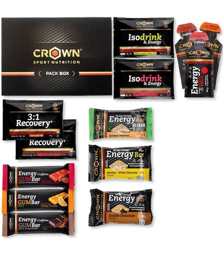 COS´È IL CROWN SPORT NUTRITION PACK ENDURANCE TESTER? Il Crown Sport Nutrition Endurance Tester Pack è un pack con i 13 prodotti di punta Crown Sport Nutrition e / Shaker PRO, focalizzato principalmente sugli atleti di endurance (triathlon, ciclismo, trail running, maratona, ecc.) che vogliono provare per la prima volta i nostri prodotti senza dover acquistare una scatola intera. COSA INCLUDE IL CROWN SPORT NUTRITION ENDURANCE TESTER PACK? 6 BARRETTE ENERGETICHE ENERGY BAR6 barrette energetiche Energy Bar di diversi gusti (doppio cioccolato, banana al cioccolato bianco, yogurt, cioccolato salato e arachidi salate vegane, fragola vegana): fonte di carboidrati (energia) e sali minerali (nelle versioni salate). Ideale da assumere durante l´attività sportiva. Puoi anche usarli per la colazione o per il cibo pre-allenamento o da competizione. 4 Bustine di GEL ENERGETICO 4 bustine di Energy Gel (frutta rossa caffeinata, cola caffeinata, limone, arancia): perfetta combo di carboidrati (energia), aminoacidi e sali minerali, che aiutano a ritardare l´insorgenza della fatica. Inoltre, nelle versioni caffeinate, miglioriamo la prontezza mentale, il processo decisionale e la contrazione muscolare. Da assumere durante l´attività fisica. 2 Bustine DI ISODRINK & ENERGY2 bustine di Isodrink & Energy (limone, frutti rossi): è una bevanda sportiva in polvere di altissima qualità e con una composizione premium che fornisce tutti gli Ingredienti: necessari non solo per mantenere ma anche per migliorare le prestazioni nei tuoi allenamenti e competizioni Shaker 500 ml ideale per preparare i tuoi mix proteici da bere durante l´allenamento o riempirlo con la tua bevanda isotonica preferita e portarlo con te quando esci in montagna, in bicicletta, in trail o in corsa. QUALI VANTAGGI OFFRE IL CROWN SPORT NUTRITION ENDURANCE TESTER PACK? Contiene prove di tutti i prodotti in modo che prima di acquistarli in quantità maggiori tu possa decidere se ti piacciono o meno. Trovi prodotti per ogni momento dell´allenamento: prima, durante o dopo. Integratori per idratarci, mantenerci energici o per recuperare. Gusti incredibili e facile assimilazione in modo che possiamo prenderli in qualsiasi momento. Indicato per allenamenti di resistenza come MTB, corsa, trail, maratone, ecc. A CHI È RIVOLTO QUESTO PACK? Il Crown Sport Nutrition® Endurance Tester Pack è indicato per atleti con un´elevata richiesta energetica come gli atleti di endurance. Altamente raccomandato per:TriathlonBicicletta da strada e da montagnaCorsa e trail running. Tutti gli atleti con esigenze energetiche extra PERCHÉ SCEGLIERE CROWN SPORT NUTRITION? Crown Nutrition è un marchio spagnolo con scienza, qualità e trasparenza come valori.SCIENZACrown Sport Nutrition conduce studi scientifici di alto livello sui nostri prodotti e utilizziamo materie prime e formulazioni di alta qualità con un certificato antidoping Informed Sport. ECCELLENZA NELLA LAVORAZIONEProdotti in laboratori di livello mondiale con le... ...