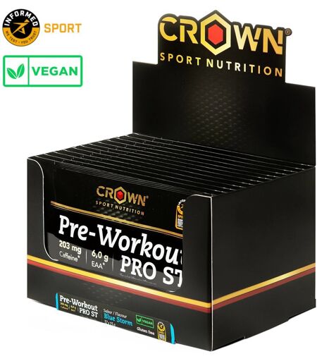 Crown Sport Nutrition Scatola Di Bevanda Energetica Monodose Pre Workout Pro St Tempesta Blu 15g 12 Unità Black