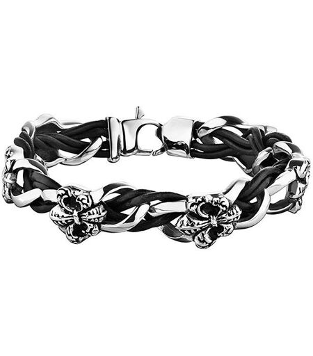 Famiglia:Braccialetto.Materiale del braccialetto:Acciaio/Pelle.Colore del quadrante:Argento.Tipo di vetro:Argento.Diametro quadrante:21 cm.Funzioni speciali:Pj.25690Blb/01-L Br superiore.Braccialetto nero.W. ...