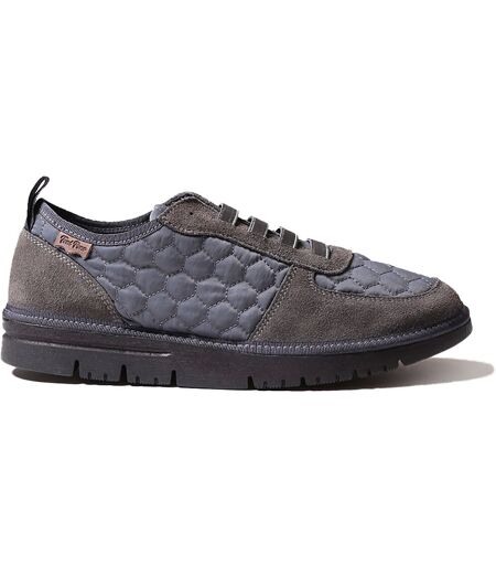 BARI-AB di Toni Pons.Scarpa da donna in tessuto e camoscio.È realizzata con una combinazione di tessuto trapuntato e un bordo in camoscio abbinato.La suola è piatta, spessa 3 cm, di cui 2 cm appartengono alla suola e 1 cm al tacco, ed è realizzata in gomma naturale.La soletta interna è rivestita in tessuto traspirante per un maggiore comfort. ...