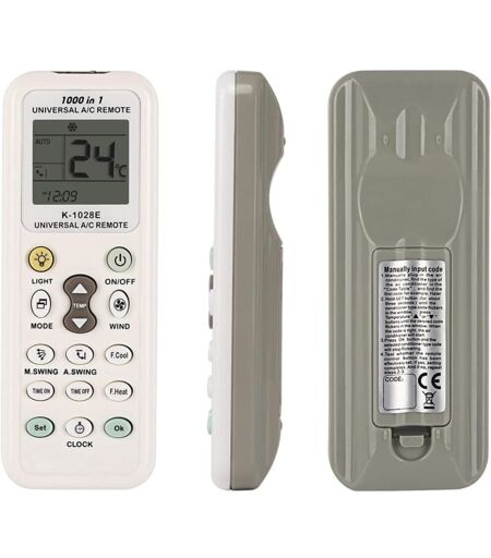 Ampia compatibilità: il telecomando universale di alta qualità K-1028E è compatibile con il 99% dei marchi di condizionatori d'aria come Gree, Carrier, Midea, LG, Samsung, Daiki, Fujitsu, Hitachi, Panasonic, Sanyo, Sharp, Haier, Mitsubishi, TCL, Toshiba, Hisense, Whirlpool, Hyundai e oltre 1.000 altri marchi. (Non adatto a condizionatori d'aria portatili/da finestra). Renditi la vita più semplice: orologio, timer, impostazioni di fabbrica, raffreddamento e riscaldamento rapidi. (Nota: il tuo condizionatore d'aria originale è dotato di timer, altrimenti non funzionerà.) Design ergonomico: illumina la tua vita: con l'illuminazione a LED, è facile da usare al buio. L'ampio schermo LCD lo rende facile da impostare e utilizzare. Facile da usare, quattro metodi di associazione: il K-1028E è impostato sulla modalità predefinita prima della spedizione e funziona direttamente con la maggior parte dei condizionatori d'aria Gree e Media. Se questo non funziona, prova i seguenti metodi: pulsante ...