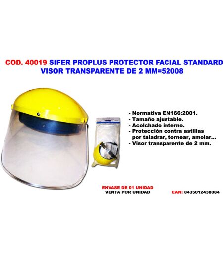 SIFER Visiera standard ProPlus con visiera trasparente da 2 mm
