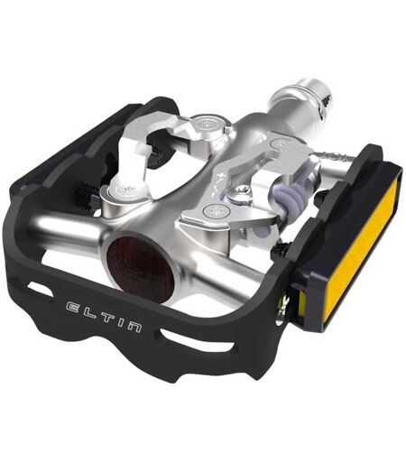 MIX di SPS compatibile con pedale automatico EltinCorpo in alluminio _ Struttura in alluminio, nero _ Albero di cromo _ Cuscinetti a sfere _ Ormeggio cromato, da un lato, con tensione regolabile _ Compatibile con SPD _ Tacchette: EC05, 21 g / pz (stock) _ Ganci per dita e cinturini _ Riflettente incluso ...