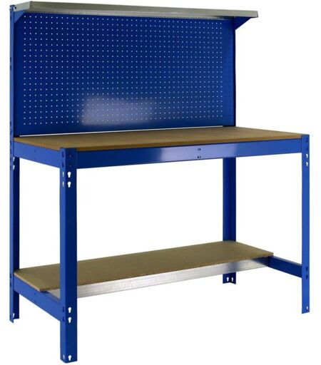 SIMONRACK Simon Rack Banco da lavoro per officina, capacità di carico 400 kg, 1445x910x610 mm, tavolo da lavoro fai da te, Blu/Legno - BT3