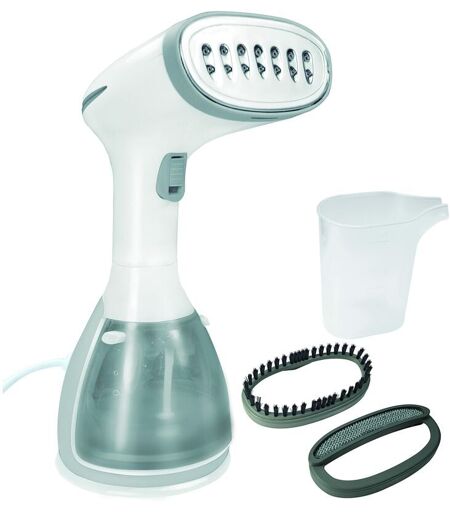 Spazzola a vapore da 1500 W che consente di stirare i vestiti direttamente sulla gruccia grazie al vapore verticale. Con sistema antigoccia e accessori rimovibili per capi delicati e levapelucch ...