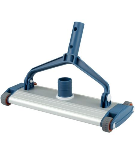 Pulitore per piscina manuale AstralPool serie Blue Line, con attacco a galletto. Rif. 69694. Realizzata in alluminio e materiale termoplastico, con quattro ruote e una spazzola per rimuovere facilmente lo sporco. Tutti i suoi perni e ganci sono realizzati in materiale plastico anticorrosivo, ad eccezione delle molle e delle viti di pressione della spazzola, che sono in acciaio inox. Il suo collegamento al sistema di depurazione avviene tramite un tubo da 38 mm, non compreso nel prezzo. Sconsigliato per piscine liner o prefabbricate. Viene fornito senza manico e senza tubo di aspirazione. ...