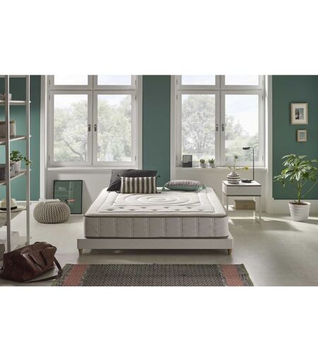 Sistema di riposo: il materasso Cashmere Premier è il risultato della combinazione dei migliori materiali, come la fibra naturale di cachemire e il Supersoft. Questi materiali sono impiegati nella produzione di cuscini, materassi e sistemi di riposo di alta gamma. Sistema Pression Care: grazie a questo sistema il materasso dispone di 9 zone di riposo che consentono di distribuire il peso in modo perfetto e di ridurre le zone in cui il peso si concentra in modo sbilanciato. Spessore: +/- 27cm Schiuma Supersoft + Fibra BioTherm: 5cm Sistema Pression Care di gestione del peso: 9 zone di riposo Tecnologia DuoSystem® H2-H3 per durezze indipendenti: durezza media lato A e durezza elevata lato B Riposo pulito, sistema Sanitized®: igienizzato contro funghi, acari e batteri per un riposo nella massima igiene Anallergico, anti-statico, anatomico ed ergonomico Perimetro rinforzato con speciali cuciture per una maggiore compattezza e resistenza Strati indipendenti: sistema che distribuisce e ...