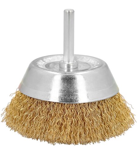 Spazzola in Acciaio Ottonato per Trapano a Tazza Ø 75 mm. Spazzola per trapano a filo in ottone con punta da 1/4", spazzola per pulizia, spazzola per lucidatura. Diametro: 75 mm. Spessore: 6 mm. Punta da 1/4". Con acciaio ottonato filo Ø 0,3 mm. Punte in acciaio ottonato. Utilizzo in normali trapani, massimo 4500 RPM Ideale per lucidare superfici ossidate in genere, lucidare scorie di saldatura, asportare vernici, asportare piccole incrostazioni in genere. Articolo noto come spazzolino pulivernici , spazzola per la pulizia della ruggine, spazzola per la lucidatura dei metalli, spazzola per la rimozione della vernice, spazzola per la rimozione della ruggine.Spazzola a tazza in acciaio ottonato - Diametro: 75 mm. - Spessore: 6 mm. - Punta da 1/4". - Con filo in acciaio ottonato Ø 0,3 mm. - Punta in acciaio ottonato. - Utilizzo in normali trapani, massimo 4500 RPM - Ideale per lucidare superfici ossidate in genere, lucidare scorie di saldatura, asportare vernici, asportare piccole ...