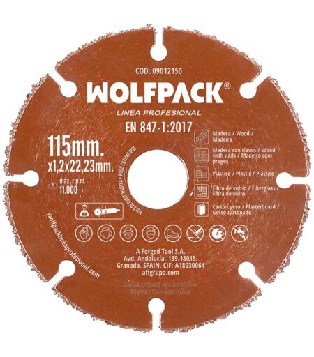 WOLFPACK - linea profesional Disco da taglio per legno/plastica ø 115 mm. Tagliente Carburo di tungsteno Carburo di tungsteno Carburo di tungsteno