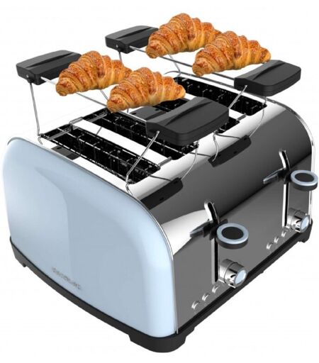 CECOTEC Tostapane in acciaio con quattro fessure corte, potenza di 1700 w e griglia scaldabrioche. -