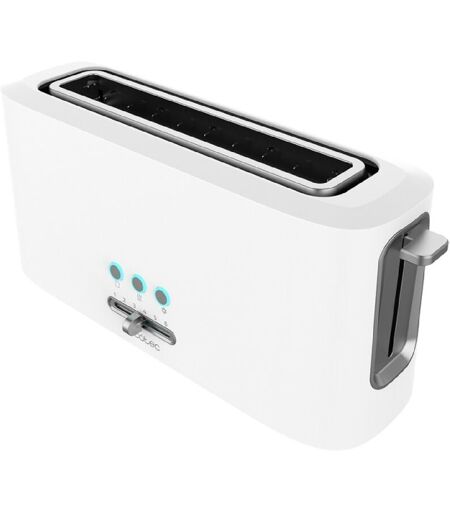Tostapane con una fessura con capacità da 2 toast e 980 W di potenza massima. Una fessura extra-larga che consente di introdurre differenti tipi di pane spesso o di grandi dimensioni. Design elegante con rifiniture in acciaio inossidabile. Dispone di 3 funzioni preimpostate: Riscaldare, Scongelare al momento e Cancellare (per interrompere in qualsiasi momento il processo di tostatura). Supporto superiore per riscaldare alimenti di grandi dimensioni come prodotti da forno o croissant. 6 livelli di tostatura del pane. Utilizza la manopola per selezionare il livello di tostatura. Funzione extraelevazione per rimuovere facilmente il pane, specialmente utile con pezzi più piccoli. Cassettino raccoglibriciole facile da estrarre per una pulizia rapida e semplice. Spia di funzionamento. Sistema di centratura automatica della fetta per ottenere una tostatura totalmente uniforme su entrambi i lati. Base antiscivolo e vano raccoglicavo. Tostapane Supporto per panini Manuale di istruzioni ...
