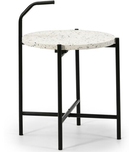 VS VENTA-STOCK - Tavolino da caffè Rotondo Yala con Piano d'appoggio in graniglia Bianco e Gambe Metalliche di Colore Nero Opaco/Diametro: 41 cm
