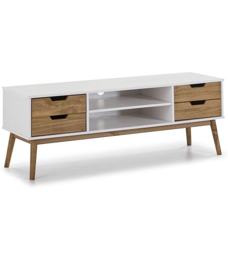 VS VENTA-STOCK - Mobile tv Java 1 Porta y 2 cassetti Bianco, Realizzato in Pino Massiccio