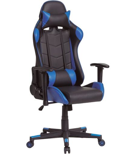 VS VENTA-STOCK Sedia da ufficio professionale Blu Gaming Racer, Sedia con braccioli, supporto e cuscino lombare (Tessuti sintetici, inclinazione e altezza