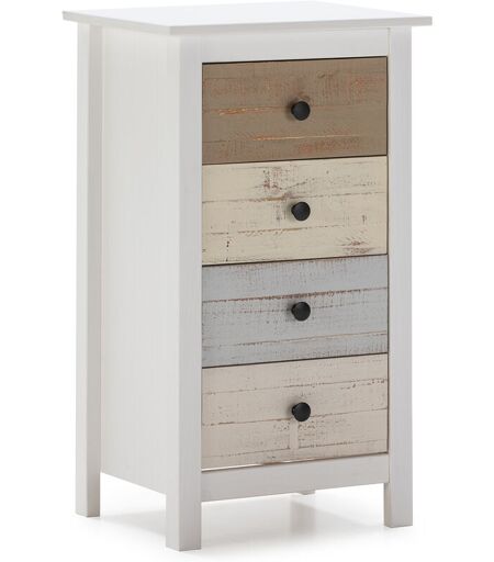 VS VENTA-STOCK Cassettiera Magda Bianco con 4 cassetti di Diversi Colori, Realizzato in Pino Massiccio