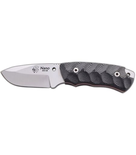 AAFGVC Bushcraft nano 2.0 coltello J&V full length con mango Nero Micarta, lama da 7,5 cm e custodia in pelle nera, attrezzo da campeggio per la pesca,