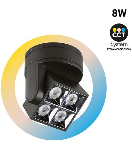 Plafoniera LED quadrata - 8W: illuminazione efficiente e adattabile Questa plafoniera unisce funzionalità e design. Perfetta per negozi, saloni o mostre. Luce di alta qualità: con una potenza di 8W, incorpora chip LED OSRAM che forniscono una grande luminosità e un elevato indice di resa cromatica (CRI >80). Design quadrato: struttura composta da 4 faretti indipendenti, per un'illuminazione uniforme e decorativa. Tonalità regolabile: il sistema CCT consente di regolare la temperatura di colore tra bianco caldo (2700K), bianco neutro (4000K) e bianco freddo (6500K). Regolabile e senza sfarfallio (No Flicker): consente di orientare la luce e offre un comfort visivo. UGR ...