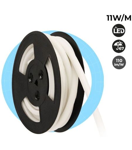 Il LED Neon incorpora un rivestimento in silicone, con finitura opalina, grazie al quale disperde la luce in modo simile alle vecchie insegne al neon. Il kit comprende tutti gli elementi necessari per l'installazione (clip di fissaggio e tappi), che non richiede strumenti speciali. Ha dimensioni di soli 12 x 12 mm e incorpora chip LED SMD2835, che offrono elevata luminosità ed efficienza. La densità di 120 chip/m garantisce un'illuminazione omogenea su tutto il prodotto. Ha una grande versatilità grazie al suo design flessibile con la possibilità di tagliare nei punti contrassegnati (ogni 5 cm). Si tratta di un prodotto resistente in silicone neutro, con protezione dai raggi UV e un elevato grado di protezione IP67, che ne consente l'utilizzo all'aperto e ne garantisce la durata in condizioni ambientali avverse. Incorporando la tecnologia LED, consente un notevole risparmio energetico rispetto ai neon tradizionali, poiché non emette calore e migliora l'effetto ottico grazie all'uso ...