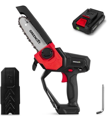 GREENCUT - Motosega portatile a batteria al litio da 20V per potatura con barra da 152mm, 6" GSM200L