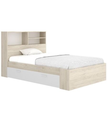Unique - Letto 120 x 190 cm Con vani portaoggetti Naturale e Bianco - vardiel