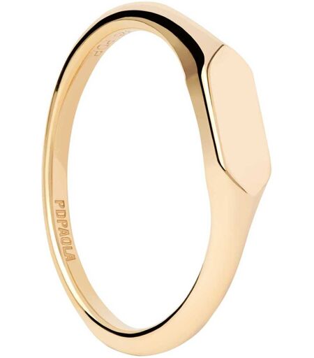 Anello Hexagon Mini Del Brand Pdpaola. Anello Sigillo Personalizzabile Di Forma Esagonale In Argento Sterling Placcato Oro 18 Kt. La Misura È 18. La Referenza È An01-C47-18, Materiale Gioiello: Acciaio, Argento 925, Bigiotteria, Oro, Pelle; Caratura ...