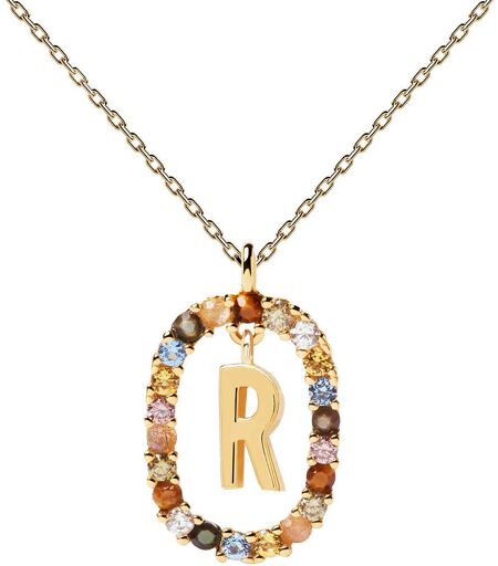 Collana Da Donna Di Pdpaola Della Collezione New Letters. Collana Realizzata In Argento 925 Placcata D'Oro 18k. Collana Con Lettera R. Collana Con Pietre: Occhio Di Tigre, Labradorite, Madreperla, Cristallo Oro Giallo, Cristallo Verde Peridoto, Cristallo ...