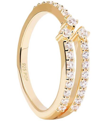 Anello Da Donna Di Pdpaola Della Collezione Essentials Della Linea Sisi. Anello Realizzato In Argento Sterling 925 Con Placcatura In Oro 18k Con Zirconi Bianchi. Misura Anello: 12. La Referenza È An01-865-12, Materiale Gioiello: Acciaio, Argento 925, ...