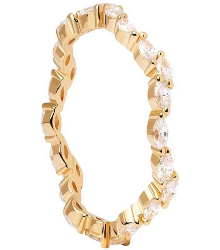 Anello Da Donna Di Pdpaola Della Collezione Essentials Della Linea Lake. Anello Realizzato In Argento Sterling 925 Con Placcatura In Oro 18k Con Zirconi Bianchi. Misura Anello: 14. La Referenza È An01-875-14, Materiale Gioiello: Acciaio, Argento 925, ...