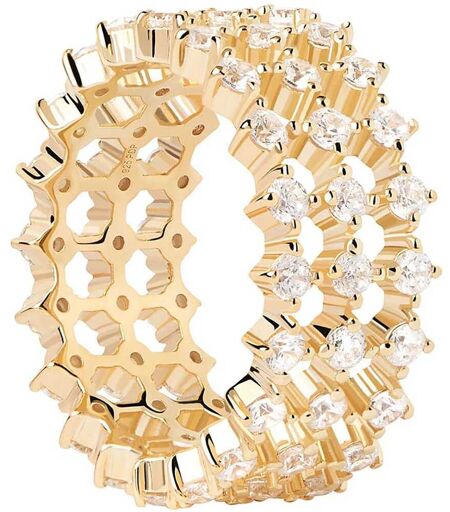 Anello Da Donna Di Pdpaola Della Collezione Essentials Della Linea Dumbo . Anello Realizzato In Argento Sterling 925 Con Placcatura In Oro 18k Con Zirconi Bianchi. Misura Anello: 14. La Referenza È An01-881-14, Materiale Gioiello: Acciaio, Argento 925, ...