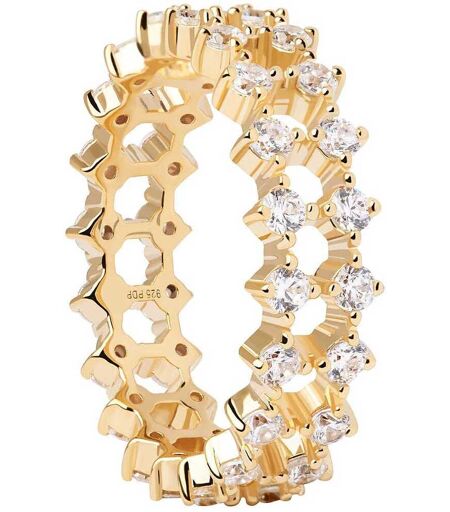 Anello Da Donna Di Pdpaola Della Collezione Essentials Della Linea Slim Dumbo . Anello Realizzato In Argento Sterling 925 Con Placcatura In Oro 18k Con Zirconi Bianchi. Misura Anello: 12. La Referenza È An01-882-12, Materiale Gioiello: Acciaio, Argento ...
